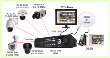 HD CCTV cameras, also known as HD security cameras, are capable of capturing video surveillance footage at 1080p resolution (1920 x 1080 pixels). These high definition surveillance cameras must be used with HD-SDI surveillance DVR.. If you would like to use a combination of HD and SD cameras, hybrid DVRs that can accommodate both types of cameras on a single system. video is digitized and stored on hard drives. Most modern DVRs are a network device, and as such can be accessed remotely from the LAN, or with the proper configuration, from across a WAN or the internet. There are no tapes to change. Video is kept on hard drives, typically on a FIFO basis so there is always a rolling video archive of the past X days